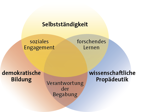 Deshalb schärfen wir unseren Blick für Begabungen und fördern sie wie Edelsteine aus der Erde. »Begabung« verstehen wir dabei nicht nur als Boah-bist-du-schnell-im-Kopf, sondern zählen dazu auch Merkmale wie Dran-Bleiben-Wollen, Kreativität, Motivation, Sinn für die Gemeinschaft und Fähigkeiten im Umgang mit Gefühlen. Wir orientieren unseren Begriff von Begabung an dem Drei-Ringe-Modell des Psychologen Renzulli sowie dem Münchner Begabungsmodell[1]. Begabungen und die Fähigkeit, sie zu entfalten, verändern sich übers Leben hinweg, das ist messbar. Und nicht alle spielgen sich (direkt) in Leistung wieder. Auch in Menschen, die bspw. bisher keine tollen Noten hatten, können besondere Potentiale schlummern. Denn wir wissen, dass Begabungen einen passenden Raum und Anreiz brauchen, damit sie sich entfalten, zeigen und wirken können. Dieser [Freiraum] möchte Sankt Afra sein.