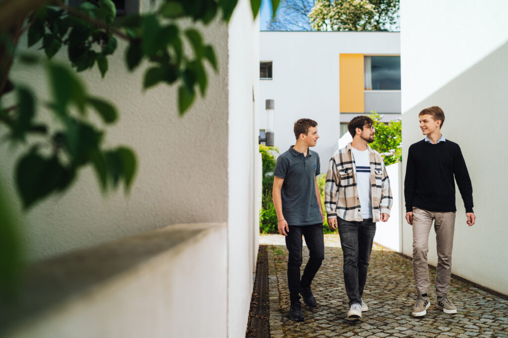 Komm rauf, hier wohnen wir und bilden eine Hausgemeinschaft von siebzehn Menschen, eine davon unsere Mentorin, unser Mentor – die wohnen auch im Dorf, gleich nebenan. Zusammen stemmen wir den Alltag, planen gemeinsame Unternehmungen, machen Ausflüge – diese Nähe schweißt zusammen.